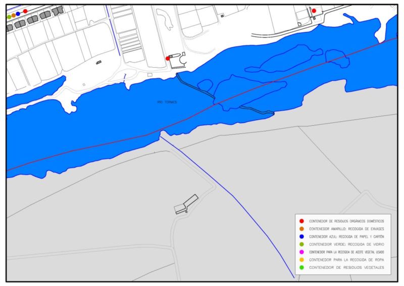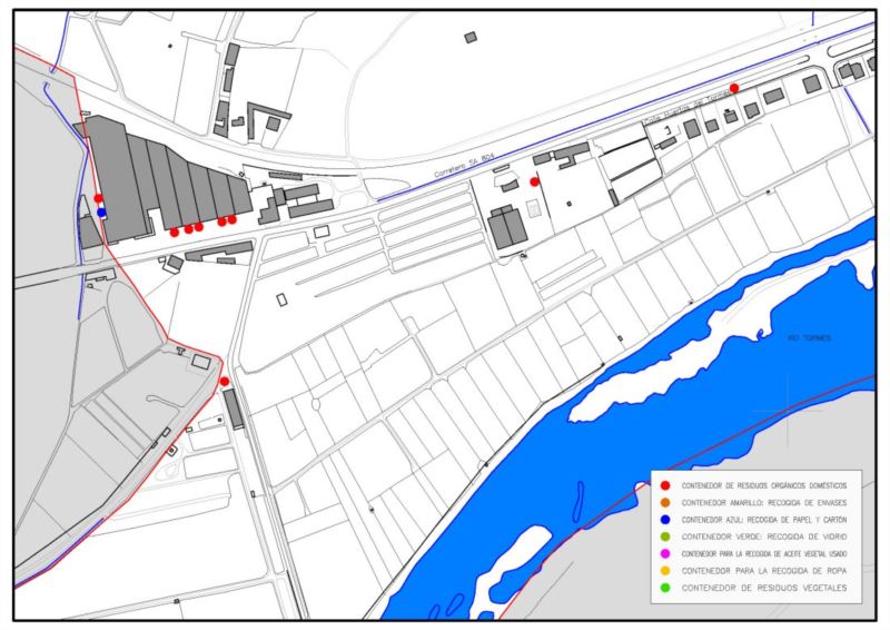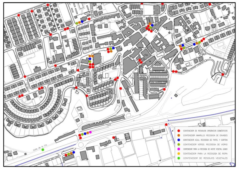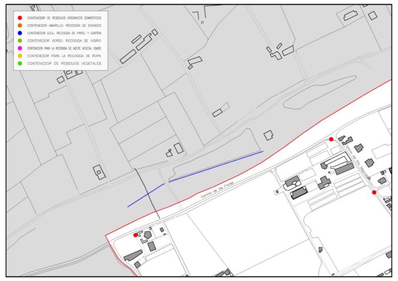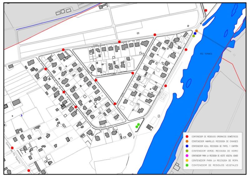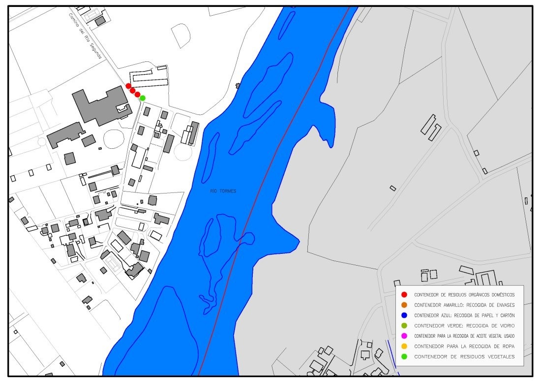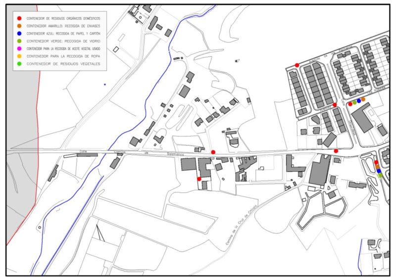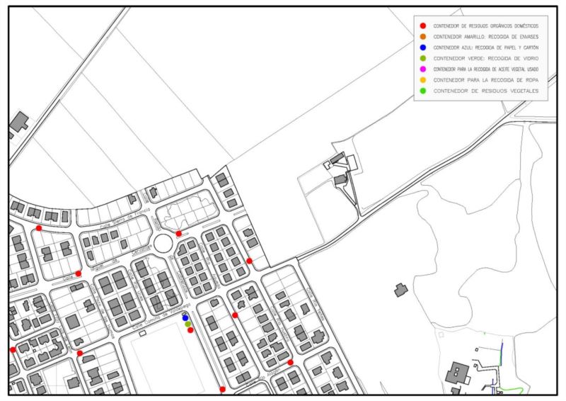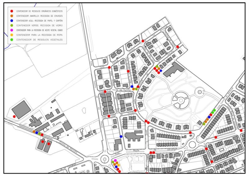 En la imagen que se muestra a continuación se encuentran situados los puntos de recogida de residuos en Cabrerizos.